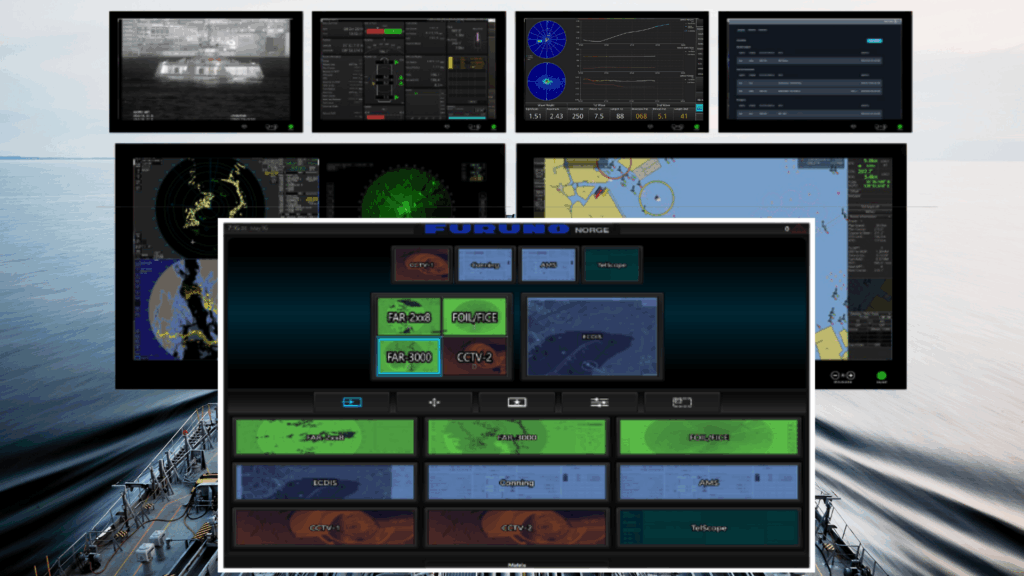 BlueBridge™ er en moderne, fleksibel skjermstyringsløsning som rydder opp broen ved å optimalisere skjermbruk og sentralisere systembetjening, inkludert dimming. Ved å definere operasjonsmoduser og konfigurere forhåndsvalg for av skjermer for systempresentasjon kan skjermer deles mellom et antall systemer som går langt utover antallet tilgjengelige monitorer. Godt definerte presets for ulike operasjonsmodus sikrer at relevant informasjon vises til rett tid og på rett sted.